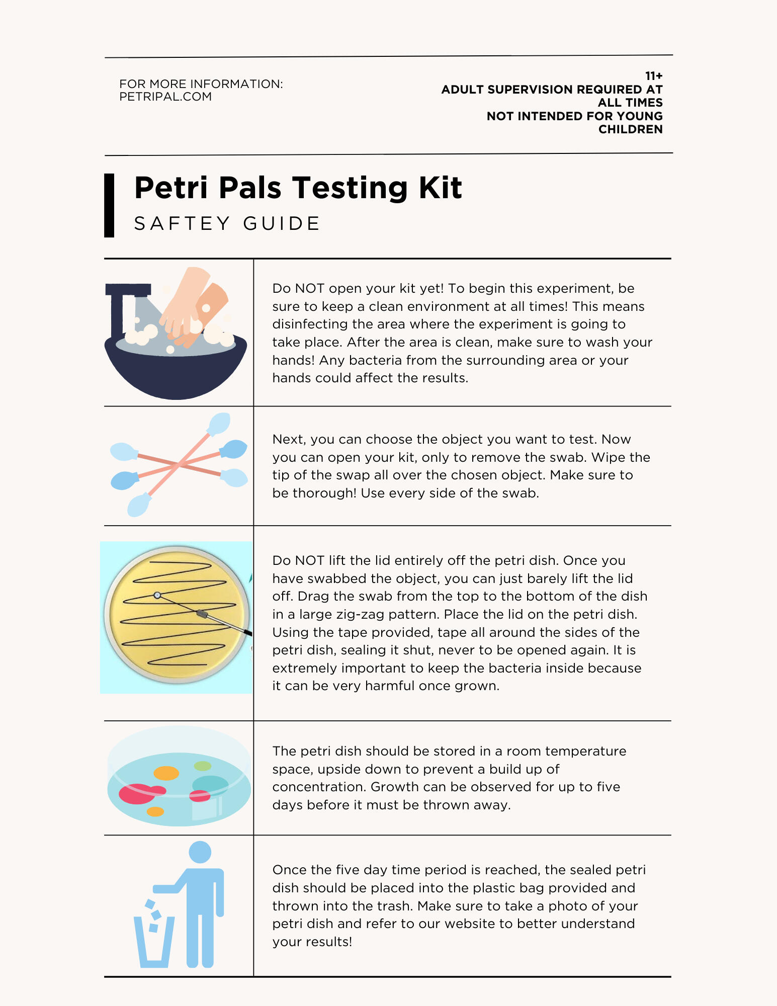 PetriPal provides a purchasable DIY at home petri dish kit to help children (and anyone else interested!) grasp the idea of surface bacteria growth using hands on, inquiry based, science experiments they can do in their own home.